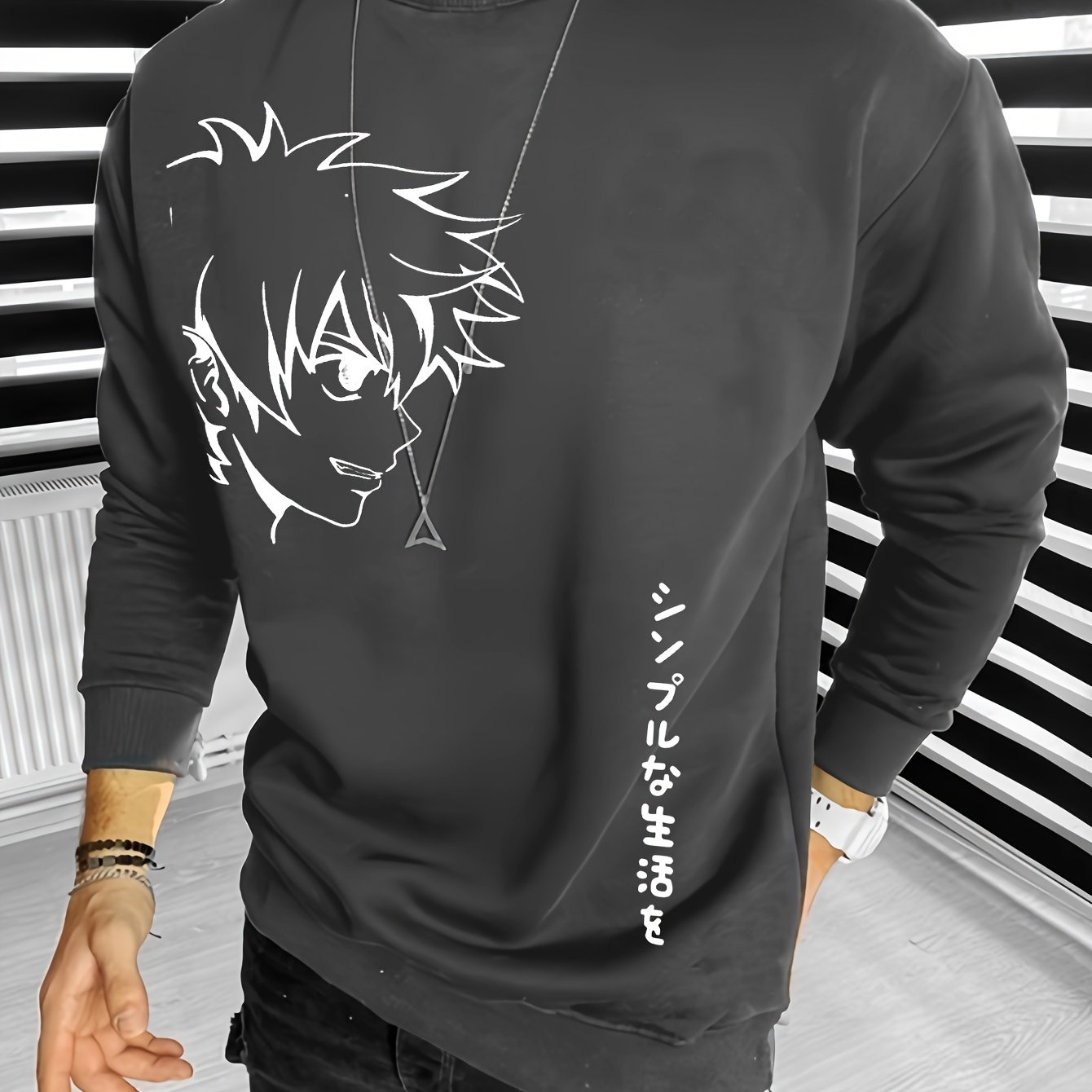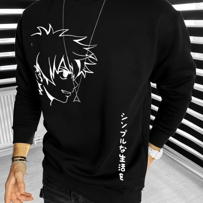 Fashionable Men's Casual Anime Character Print,Long Sleeve Round Neck Pullover Sweatshirt,Suitable For Outdoor Sports,For Autumn And Spring,Can Be Paired With Hip-hop Necklace,As Gifts