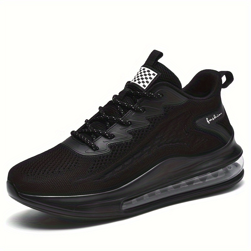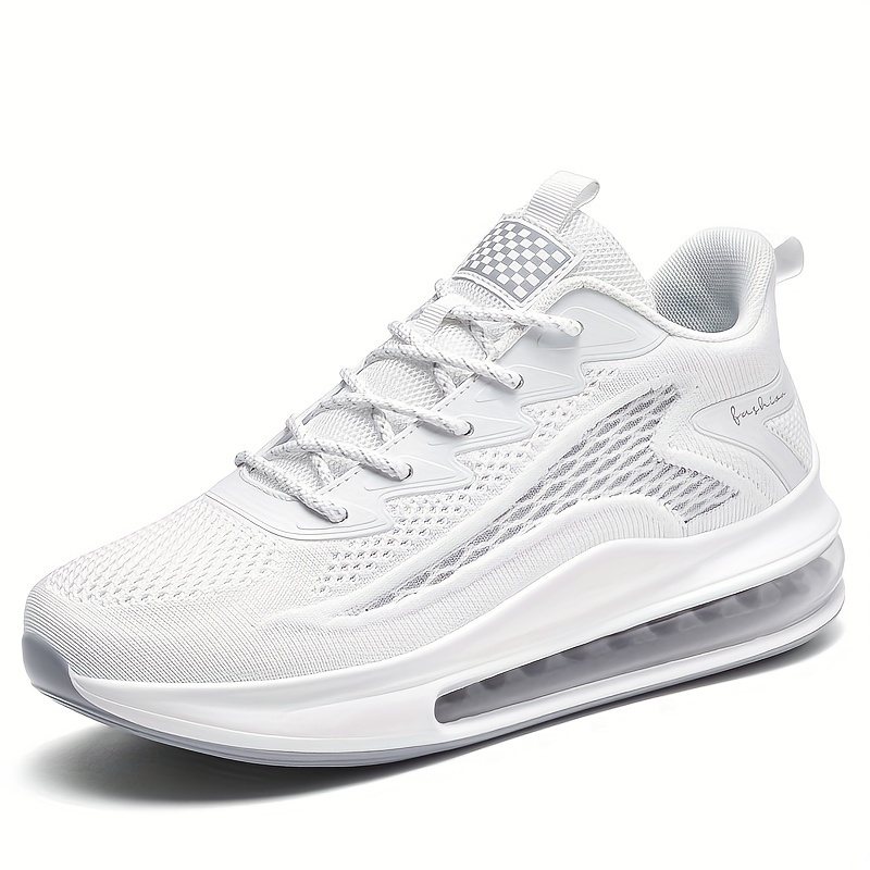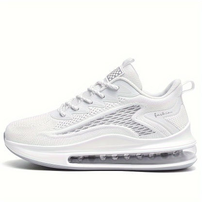 Plus Size Men's Solid Sneakers With Air Cushion, Comfy Non Slip Lace Up Durable Shoes For Men's Outdoor Activities