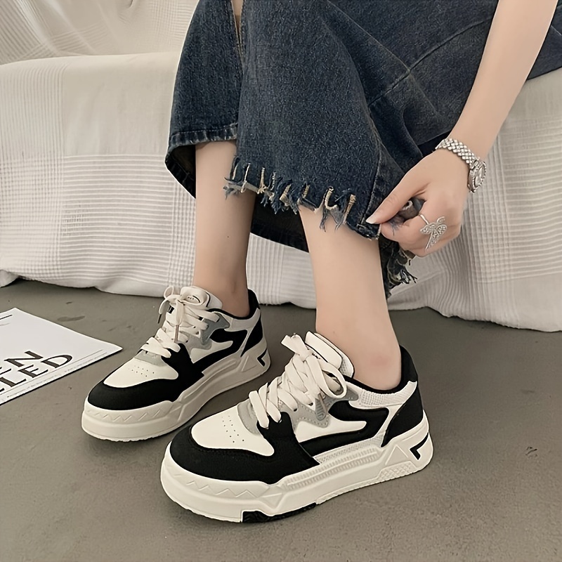 Women's Platform Skate Shoes, Colorblock Round Toe Low Top Sneakers, All-Match Outdoor Trainers