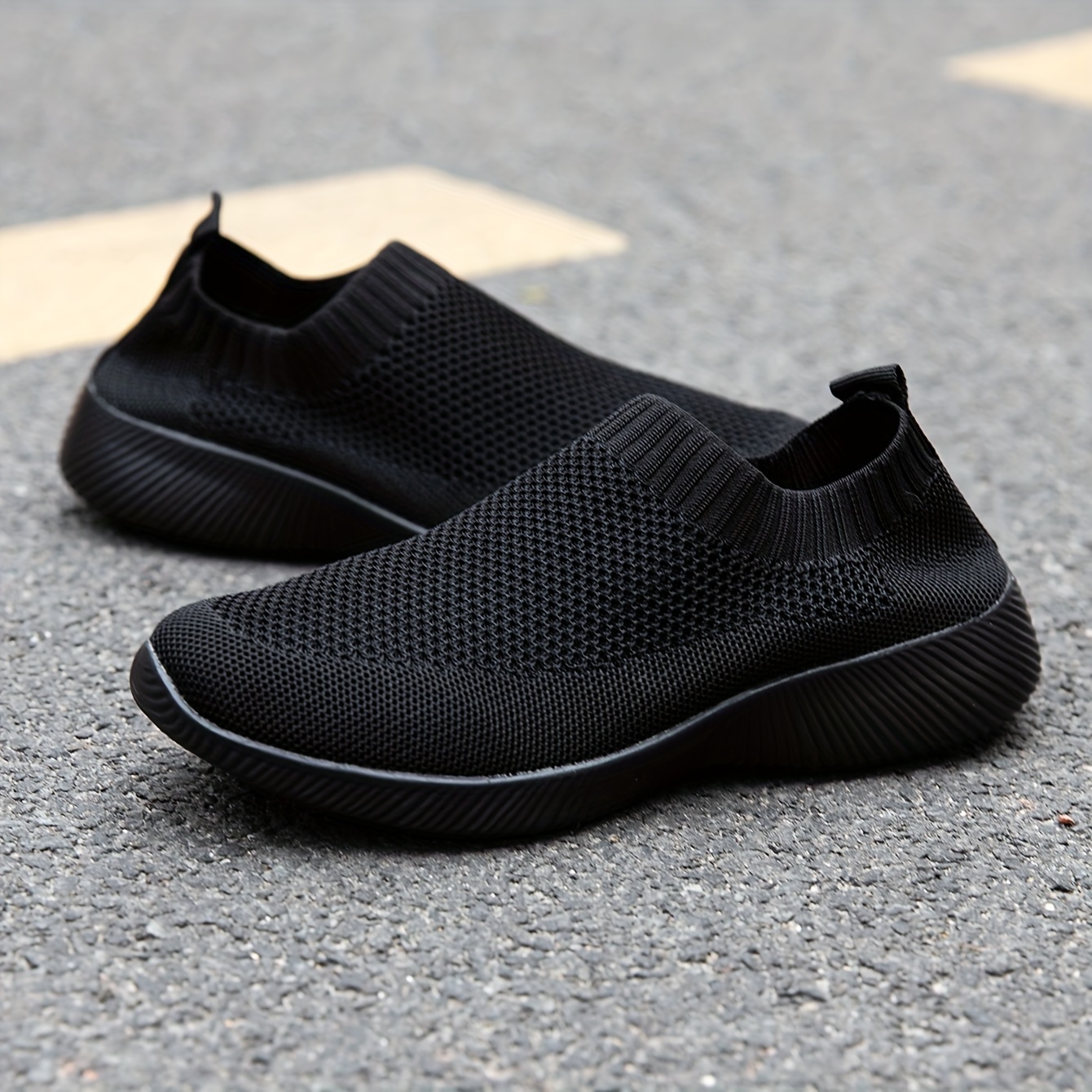 Women's Solid Color Flying Woven Sneakers, Casual & Breathable Slip On Outdoor Shoes, Lightweight Low Top Running Shoes